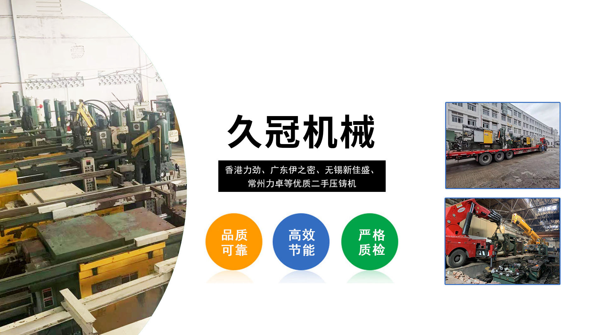 ? ? ? ?臺州久冠機(jī)械科技有限公司位于浙江省臺州市路橋區(qū)峰江鎮(zhèn)峰江路一號 ,專業(yè)從事二手壓鑄機(jī)及周邊設(shè)備業(yè)務(wù),專營國內(nèi)知名品牌,如香港力勁,廣東伊之密,無錫新佳盛,常州力卓等優(yōu)質(zhì)二手壓鑄機(jī),為國內(nèi)外鑄造產(chǎn)業(yè)鏈用戶提供優(yōu)質(zhì)可靠的二手壓鑄機(jī)。公司發(fā)展與壯大二十年來,我們一直秉承團(tuán)結(jié)協(xié)作,互惠互利,誠實(shí)守信,質(zhì)優(yōu)價(jià)廉的原則和理念持續(xù)為客戶提供優(yōu)質(zhì)貨源,自公司成立以來,有在線專家服務(wù),并參加國內(nèi)外壓鑄機(jī)展會,現(xiàn)二手壓鑄機(jī)國際店鋪已搭建成型,歡迎國內(nèi)各位新老朋友前來咨詢選購!